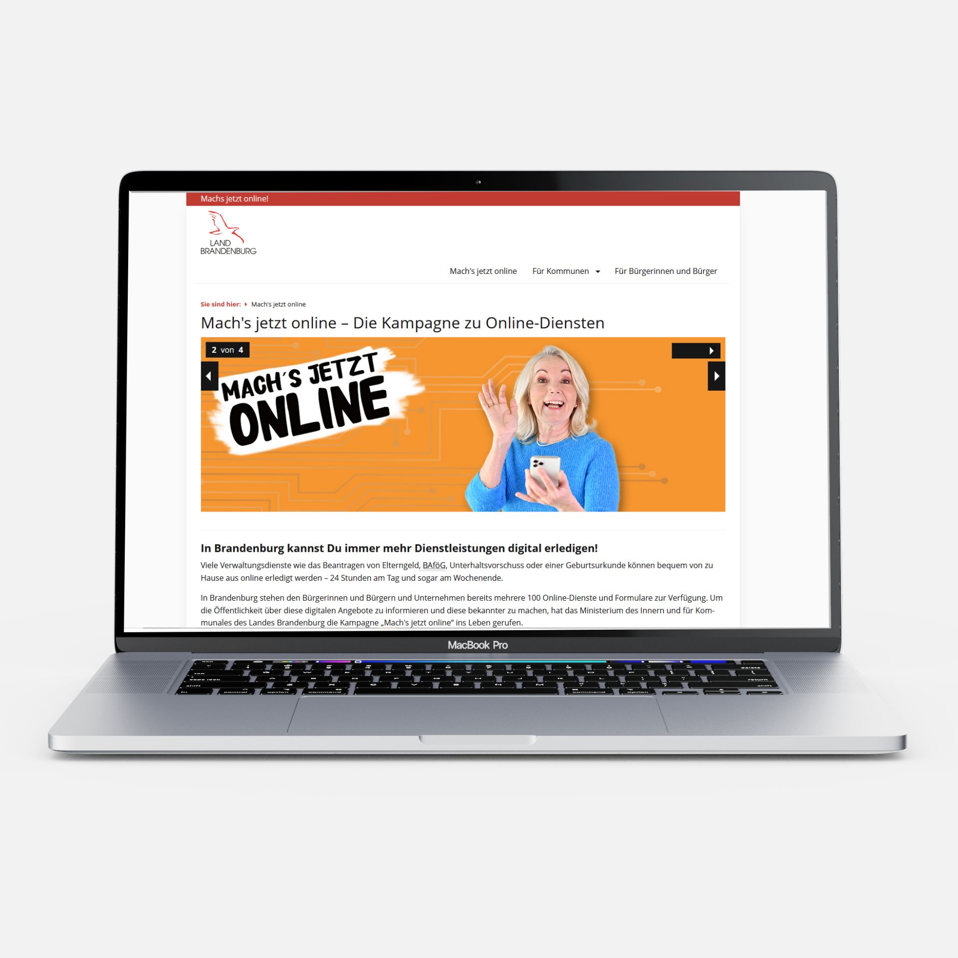 Um die Bürgerinnen und Bürger im Land Brandenburg dafür zu gewinnen, startete das Ministerium des Innern und für Kommunales die landesweite Kampagne „Mach’s jetzt online“. CONVIS setzte dafür ein umfassendes Toolkit mit Plakaten, Postkarten, Bannern, Social-Media-Posts und Starterkits für über 200 Kommunen um – begleitet von einer eigenen Kampagnen-Website, Webinaren und Pressearbeit. So wurden die Kommunen befähigt, digitale Verwaltungsangebote sichtbar zu machen und ihre Nutzung zu steigern.