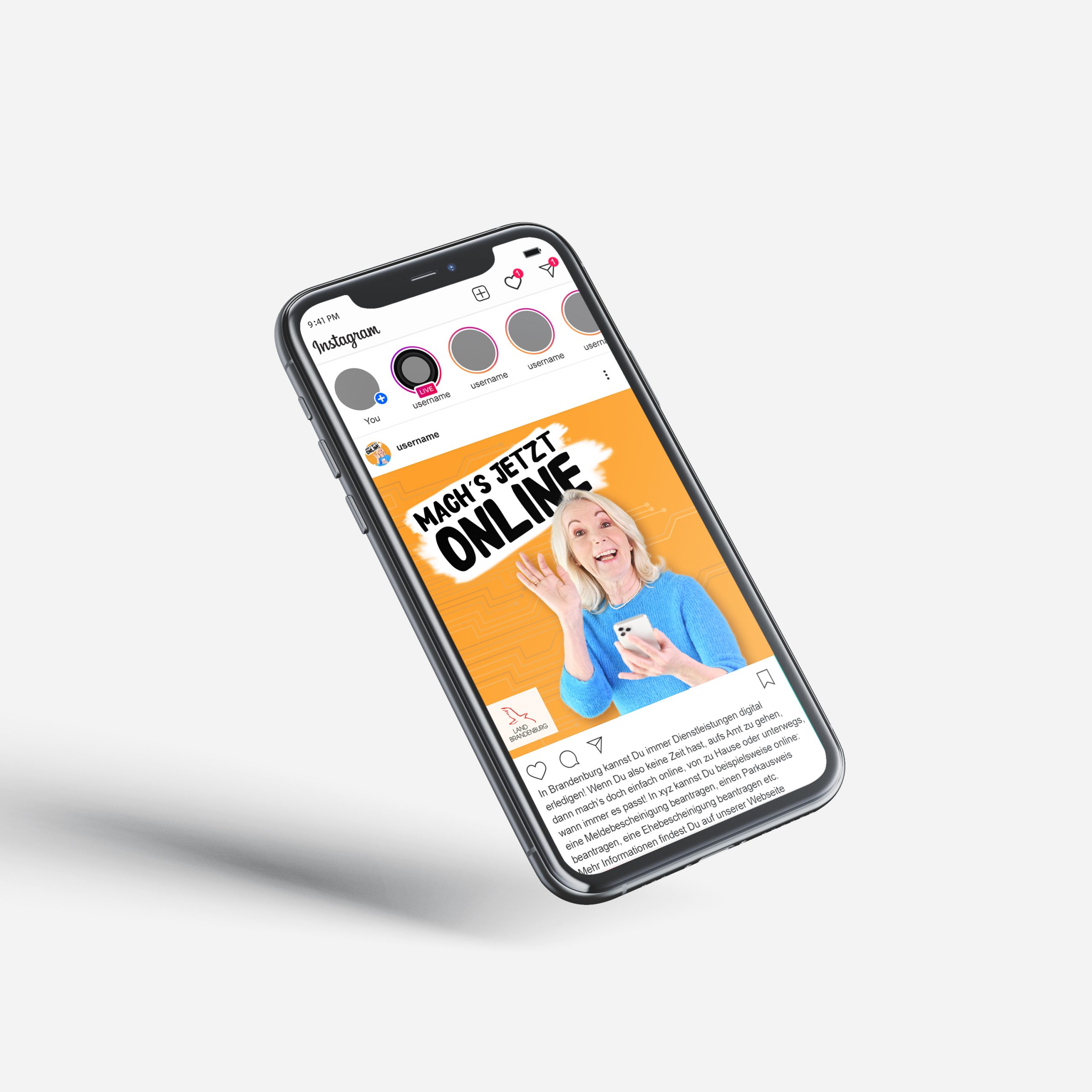 Mit dem Toolkit „Mach’s jetzt online“ erhalten alle Kommunen in Brandenburg eine Auswahl an Kommunikationsmitteln – von Plakaten und Postkarten über Banner und Social-Media-Posts bis hin zu Anzeigen. Diese Vorlagen sind sowohl allgemein einsetzbar als auch individuell anpassbar: Kommunen können ihr eigenes Logo, ihre Weblinks oder spezifische Informationen zu ihren Online-Diensten einfügen. So wird sichergestellt, dass jede Kommune Bürgerinnen und Bürger passgenau ansprechen kann – mit Materialien im einheitlichen Landes-Design, aber zugeschnitten auf die lokalen Angebote.
