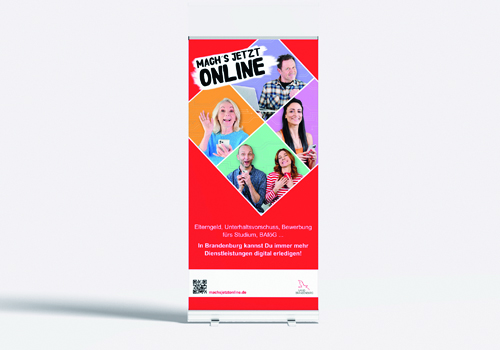 Die Kampagne „Mach’s jetzt online“ wurde in mehreren Konzeptionsworkshops unter Einsatz agiler Methoden gemeinsam mit den beteiligten Ministerien, der DigitalAgentur Brandenburg und Vertreterinnen und Vertretern der Kommunen entwickelt. Die Motive wurden zudem in Bürgerämtern im Rahmen von A/B-Tests direkt mit Bürgerinnen und Bürgern erprobt und optimiert. So entstand ein praxisnahes Konzept, das die unterschiedlichen Bedürfnisse berücksichtigt und von Beginn an breite Akzeptanz fand.